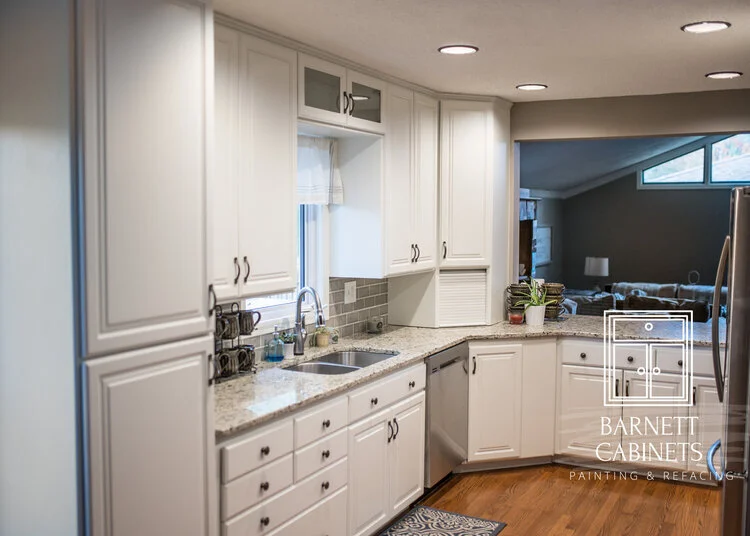 A DIY cabinet painting update with professionally sprayed doors can dramatically improve the look of your kitchen.